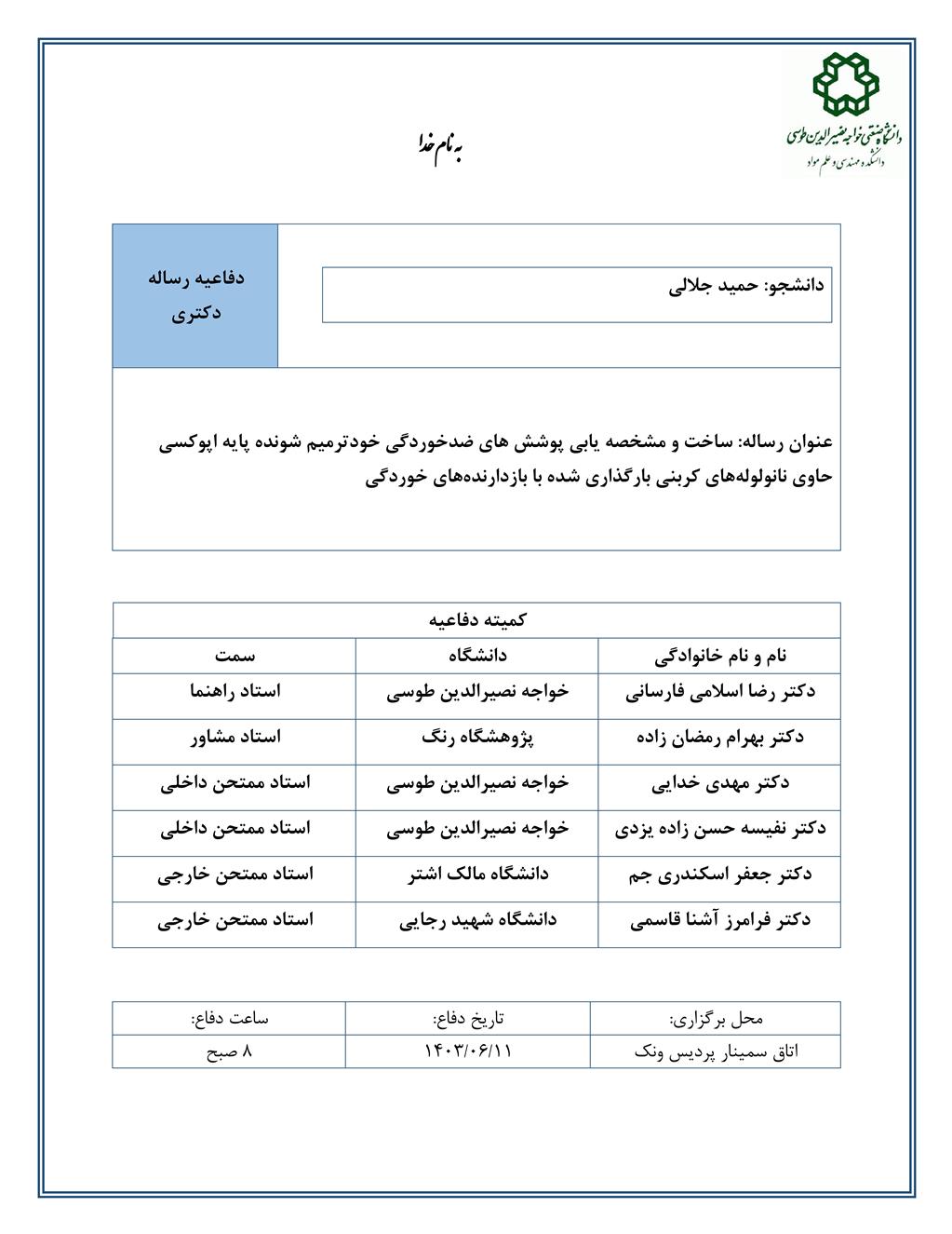 دانشجو: حمید جلالی استاد راهنما: دکتر رضا اسلامی فارسانی
